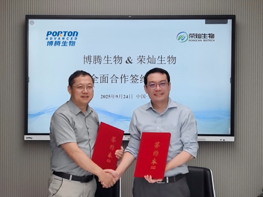 2025年9月24日,荣灿生物医药技术(上海)有限公司(简称“荣灿生物”) 与苏州博腾生物制药有限公司(简称“博腾生物”)达成战略合作,双方聚焦于LNP新型可离子化脂质的研发与生产建立深度战略合作,致力于为核酸和细胞治疗领域的客户提供先进的LNP递送技术授权与CMC服务,共同推进创新疗法的开发。